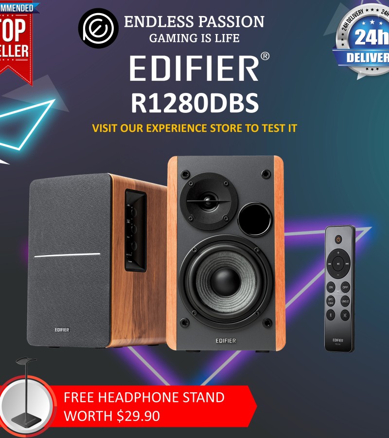 Edifier R1280DBS Active Bluetooth Bookshelf Speakers - Optical Input - 2.0 Wireless Studio Monitor Speaker - 42W RMS with Subwoofer Line Out